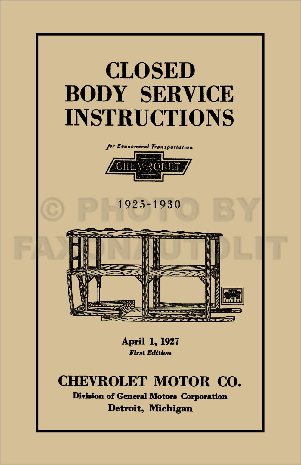 1926-1930 Chevrolet Body Repair Shop Manual Reprint