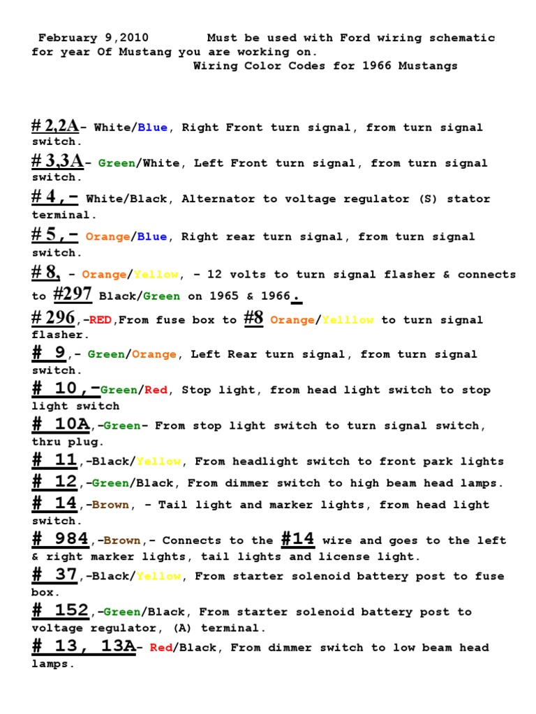 1966 Mustang Wiring Color Coding | Ignition System | Switch