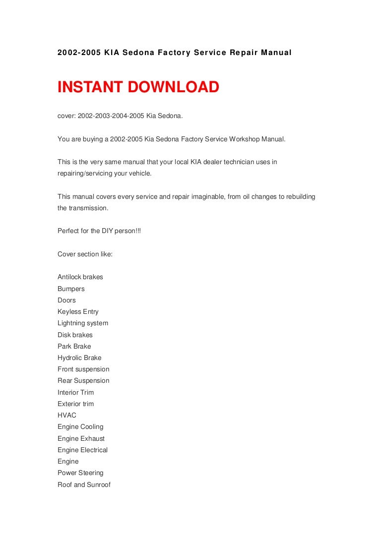2002 Kia Sedona Repair Manuals - The Far East has become a popular place to source quality automobiles at affordable prices, with Japan being home to numerous top brands and Korea fast becoming another contender.. Haynes Publishing is the worldwide leader in automotive and motorcycle repair, maintenance and customizing manuals. Every manual is written from hand-on experience based on a complete teardown of the machine, which is the step-by-step procedure of dismantling a particular vehicle part-by-part.. Model Year Document Size Language Pages; 352882046 kia niro manual.pdf 352882046-Kia-Niro-manual. 22 MB: Picanto / Morning I SA: to 2010 picanto sohc tchu.rar.