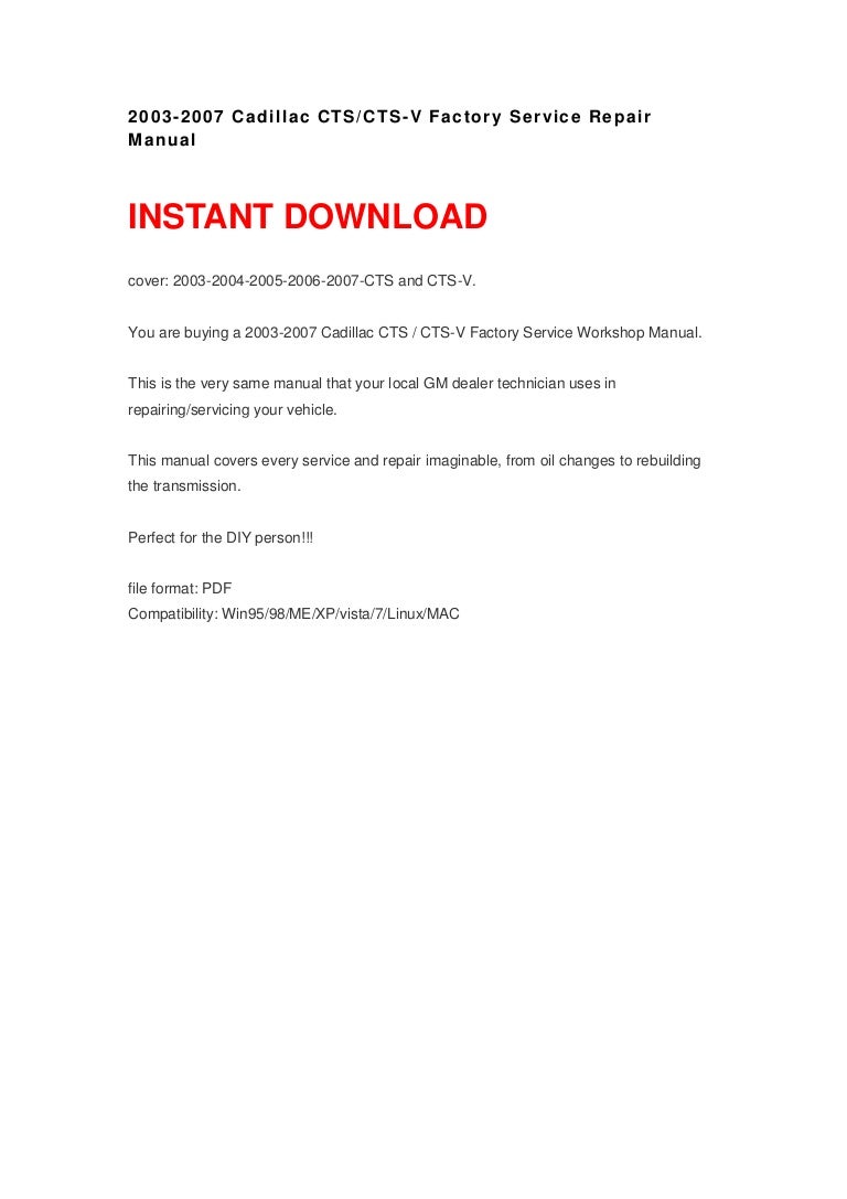 2003-2007 Cadillac CTS/CTS-V Repair Manual