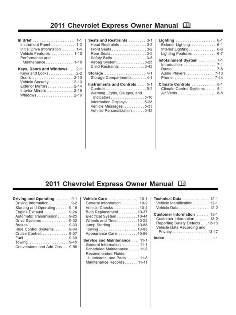 Chevrolet 2011 Express Owner Manual | Airbag | Manual Transmission