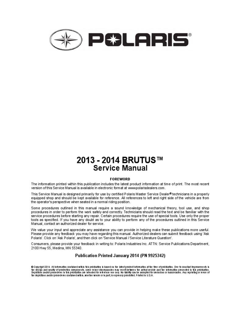 2015 Polaris Brutus HD PTO | Owners Manual - Page 112 112