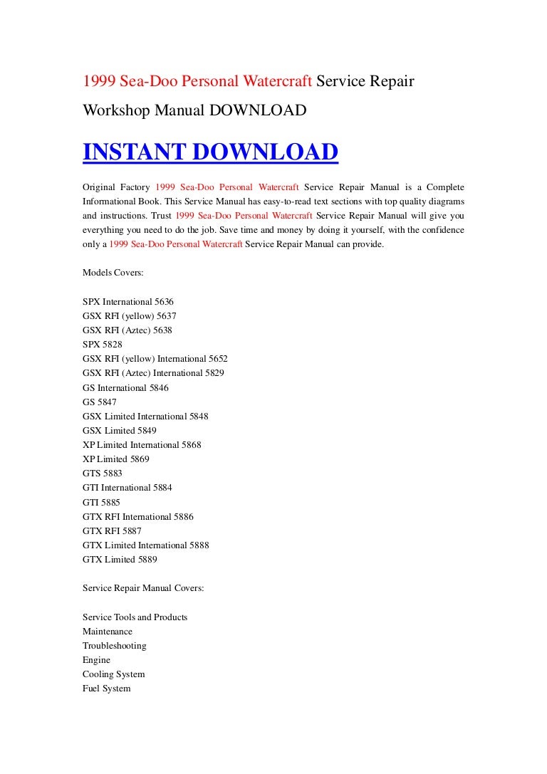 1999 Sea-Doo Personal Watercraft Service Repair Workshop Manual DOWNL…