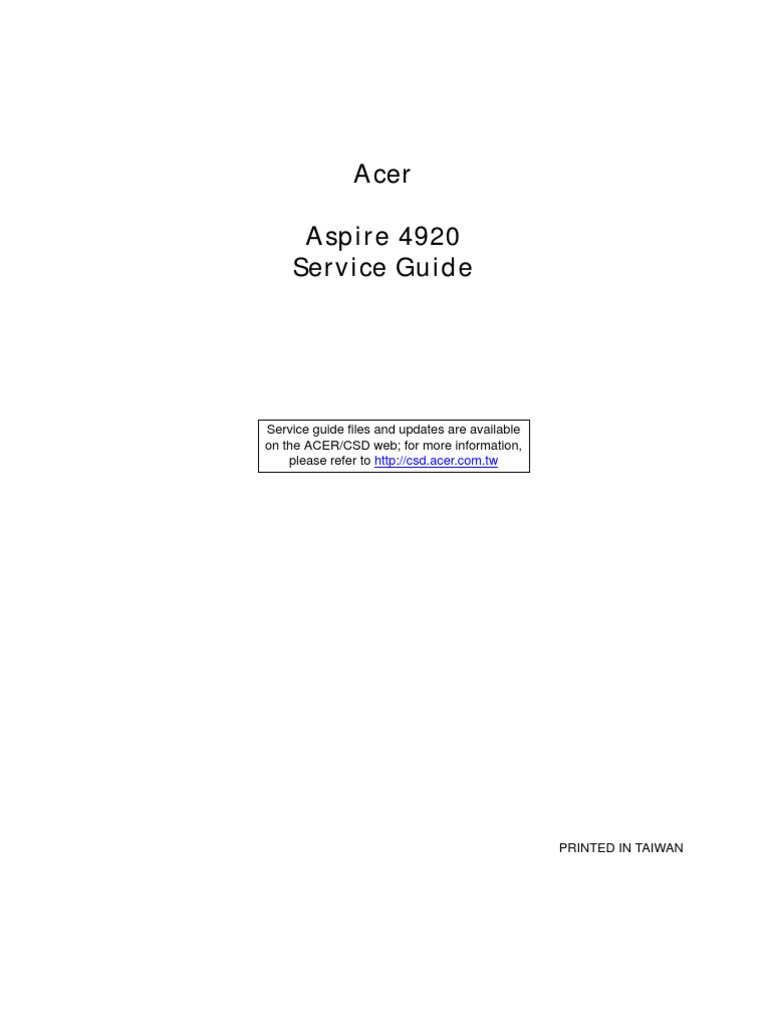 Acer Aspire 4920 4920g Service Manual - View and Download Acer Aspire 4920 user manual online. Acer Notebook PC User's Guide. Aspire 4920 Laptop pdf manual download. Also for: Aspire ms2219, Aspire 4920g, Aspire 5710 series, Aspire 5710z series, Aspire 5310 series, Aspire 4920 series.. Get help for your Acer! Identify your Acer product and we will provide you with downloads, support articles and other online support resources that will help you get the most out of your Acer product.. do you have a service manual for a acer aspire 1690 series (I have a 1692)?.