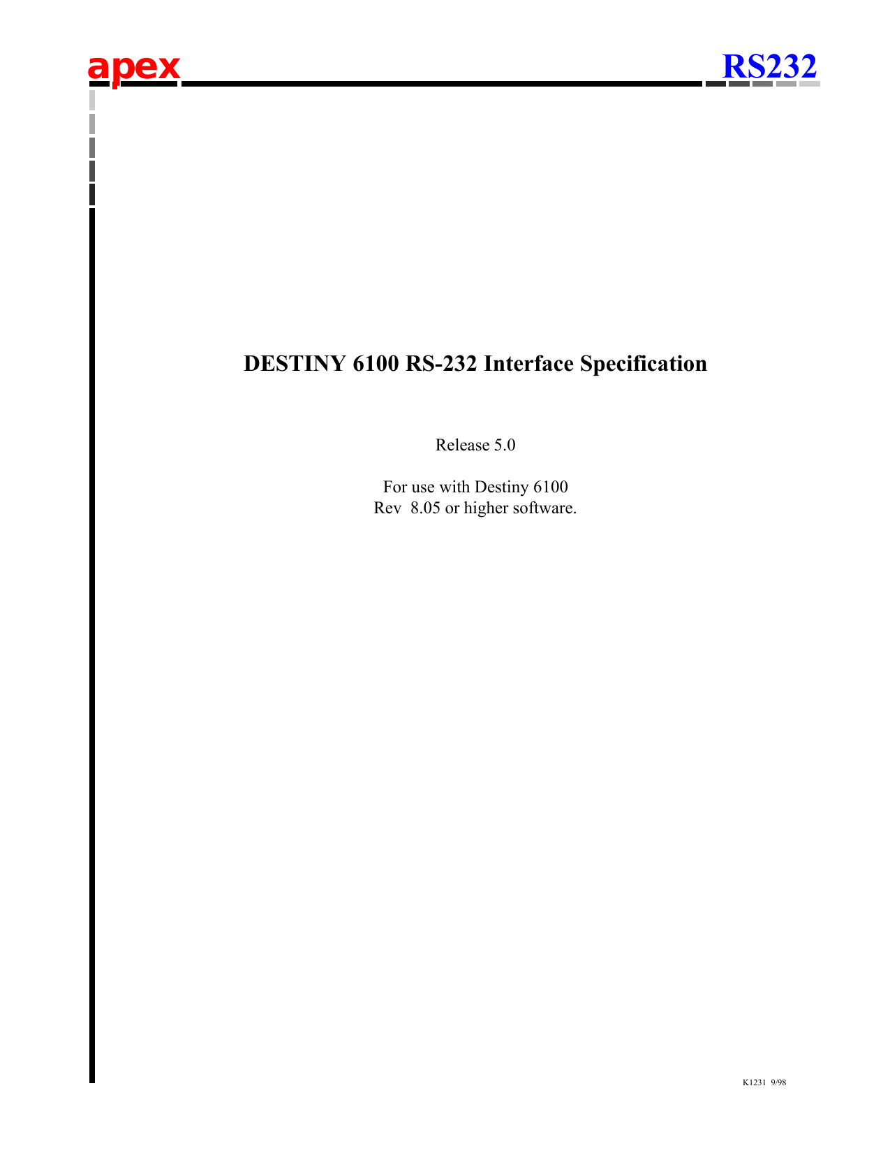 DESTINY 6100 RS-232 Interface Specification | manualzz.com