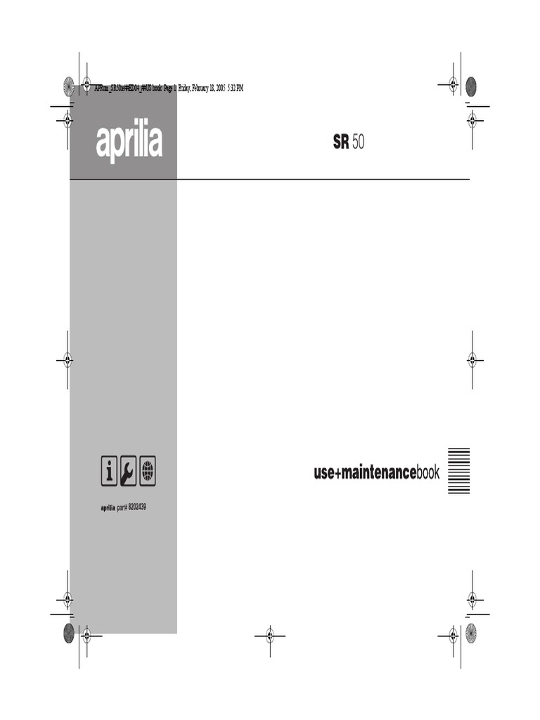 Aprilia Sr 50 2002 Manuals - Service / repair / owners manuals moto Aprilia * In order to generate a more conclusive search, the motorcycle brand (ie: Yamaha, Suzuki, etc.), the model (CBR, XTZ, DR. etc.) and the cubic capacity (500, 600, 750, etc.) must be separated by space (Correct: Yamaha XTZ 750; Incorrect: YamahaXTZ750).. View and Download APRILIA MX 50 use & maintenance book online. MX 50 Motorcycle pdf manual download.. Page 1 SCARABEO 50 I.E. - 50 /100 4T 1118 2 02/2003-00 workshopmanual Page 2: Foreword Scarabeo 100 4T 6631 Scarabeo 50 IE 5601 aprilia s.p.a. reserves the right to modify any of its mod- WARNING els in any manner at any time..
