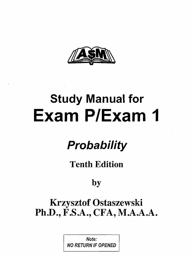ASM Study Manual Actuarial Exam P / Exam 1 8th Edition (Study Manual ... ASM Study Manual Actuarial Exam P / Exam 1 8th Edition (Study Manual for Exam P/Exam 1 Probability): Krzysztof Ostaszewski: Amazon.com: Books