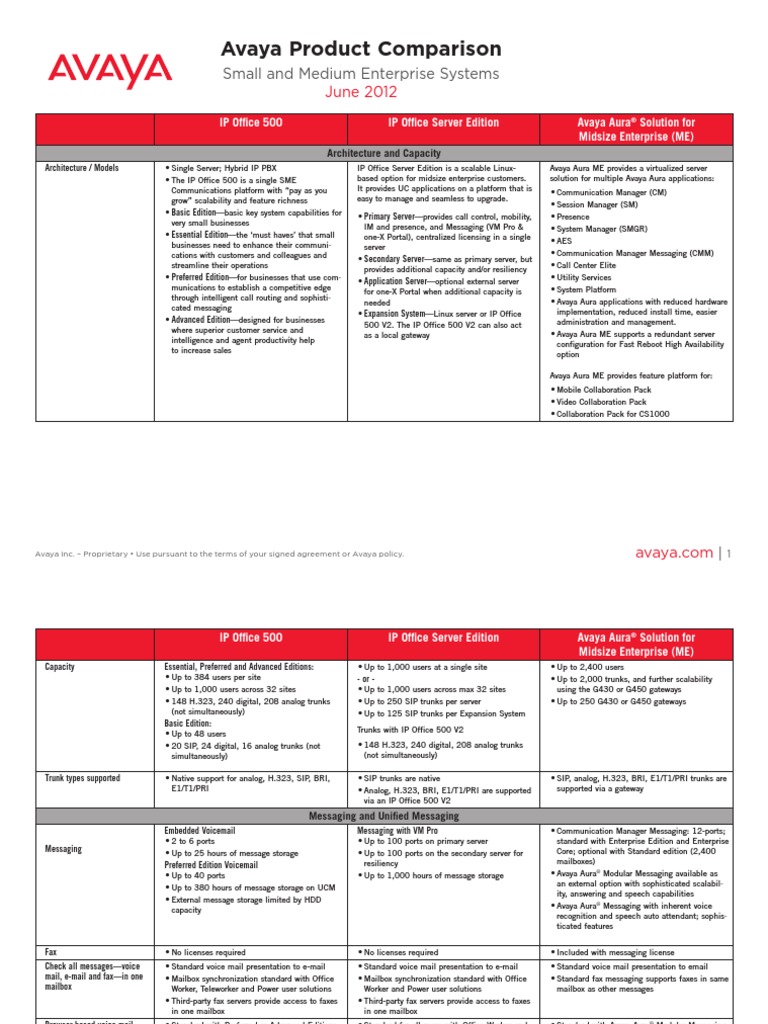 IP Office & Aura ME Comparison Matrix | Instant Messaging | Voicemail