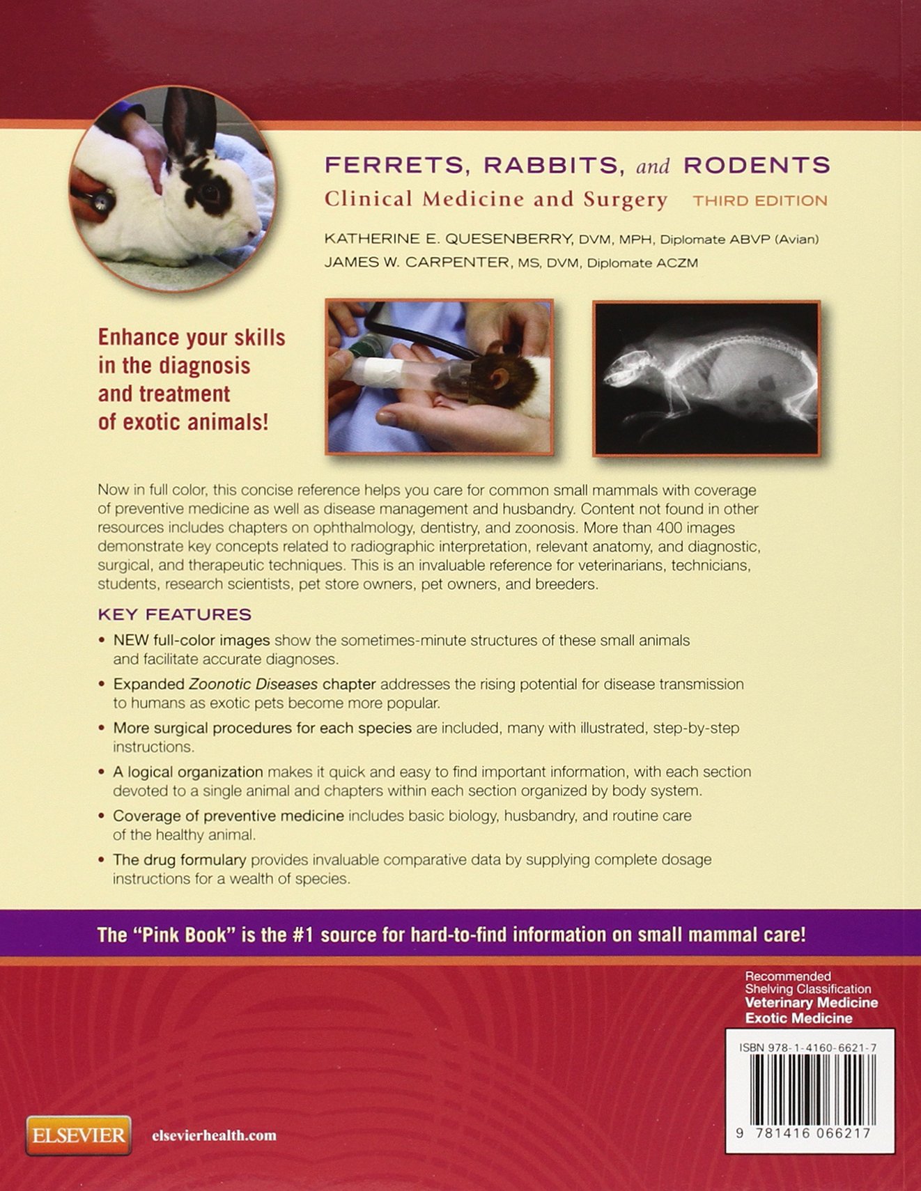 The neuroanatomy of rabbits, rodents, and ferrets is similar to that of other mammals. Therefore, one can approach the neurologic examination on companion exotic mammals in a similar manner to that described in dogs and cats. However, rabbits and rodents are prey species and are highly effective at masking overt signs of clinical illness.. Manual of Rodents and Ferrets Manual of Small Animal Dermatology Manual of Small Animal Diagnostic Imaging are advised to consult the BSAVA Guide to the Use of Veterinary Medicines (available at www.bsava.com) and to make sure that their prescribing policies and practices comply with existing. A concise guide to the care of small mammals, Ferrets, Rabbits, and Rodents: Clinical Medicine and Surgery covers the conditions seen most often in veterinary practice. The book emphasizes preventive medicine along with topics including disease management, ophthalmology, dentistry, and zoonosis..