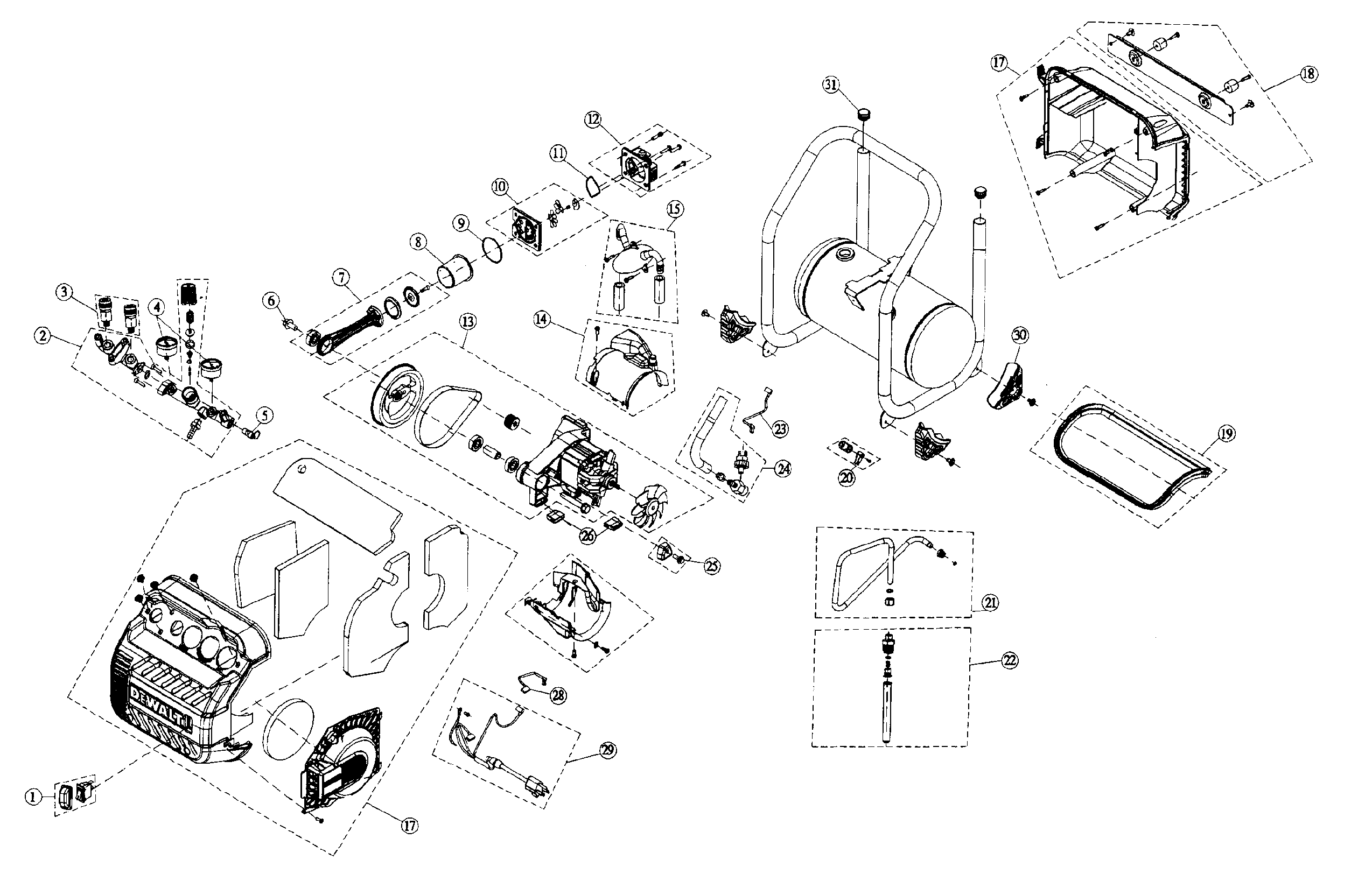 Dewalt model DWFP55130 TYPE 1 air compressor genuine parts