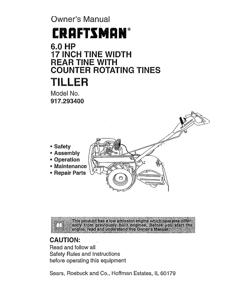 Craftsman Tiller Owners Manual Model - View and Download Craftsman 917.299230 owner's manual online. 3.5 H.P. CRT 14 INCH Rear Tine Tiller with Counter Rotating Tines. 917.299230 Tiller pdf manual download.. View and Download Craftsman 486.24326 owner's manual online. 40'' Plug Aerator. 486.24326 Tiller pdf manual download.. Prepare the Soil Using this Craftsman 25cc 2-Cycle Mini Tiller. Find reliable help as you get working on your flower and seed beds with this 25cc 2-Cycle Mini Tiller that is ideal for cultivating small gardens..