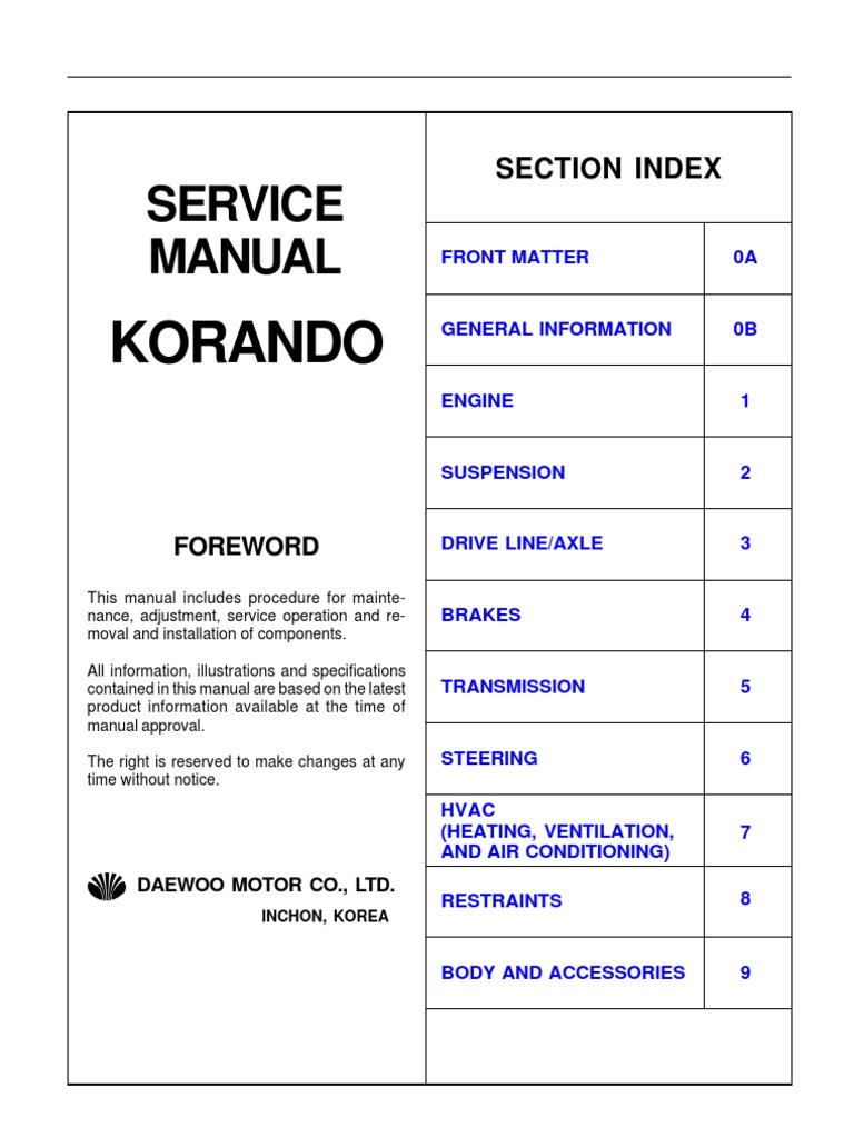 Daewoo Cielo 1997 Workshop Manual - Daewoo Korando Service Repair Manual Workshop Download For the owner with basic mechanical skills and for independant auto service professionals, this manual includes the same specifications and procedures Daewoo Leganza I II Service Repair Workshop Manual Download 1997 Daewoo Leganza BL2 Workshop Repair manual DOWNLOAD. DAEWOO MUSSO 1999-2002 SERVICE REPAIR MANUAL Daewoo Nubira Workshop Manual 1997-1999 Daewoo Matiz Workshop Manual 2003-2008 DAEWOO CIELO ENGINE WORKSHOP SERVICE REPAIR MANUAL Daewoo DTY-28A8/28A6/28A7 User Manual, Owners Guide And Instructions - TBM018302010209 DAEWOO DOOSAN SOLAR 170W-V WHEEL EXCAVATOR SERVICE MANUAL. [email protected] - [email protected] cielo load [email protected] [email protected]