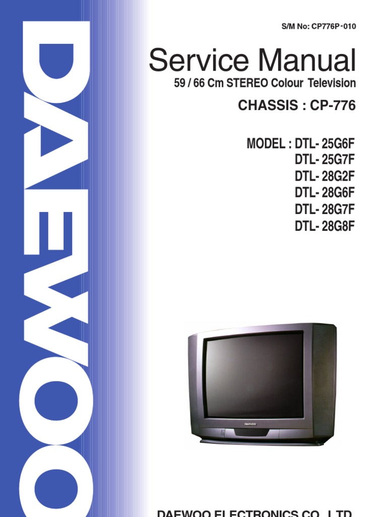 Daewoo Dtl 25g6f Tv Service Manual Download - On this you can download service manuals, schematic diagrams, circuit diagrams for Daewoo TVs, Daewoo LCD TVs, Daewoo PDP TVs and others. To download Daewoo TV schematics or service manual, select the model of your device. The list of models for Daewoo TV you can see below. When you find the file you need, click on the "Download" button opposite it to go to the. Daewoo CP310 chassis Circuit Diagram pdf Daewoo DMQ-2057 c-50 Circuit Diagram pdf Daewoo _chassis CP-330 Circuit Diagram pdf Daewoo _chassis CP375 Circuit Diagram pdf Daewoo 20W2 ch.SL-140T Service Manual Daewoo 1418R DTC14B1VUP chassis CP-325 Circuit Diagram pdf Daewoo 2597 Circuit Diagram pdf Daewoo ch CM905F Circuit Diagram pdf Daewoo ch SL-223P Circuit Diagram pdf Daewoo. This is a Service Manual for Daewoo DTL 29U8ZLP / DTL 29U8ZLS 68CM / 66CM WIDE STEREO COLOR TELEVISION and covers every part of it, in and out, and is made specifically for this model and series. This manual is complete in itself and has all the information which the CD ROM Manual contains. Models Covered: DTL 29U8ZLP / DTL 29U8ZLS DTL 29U8ZZP / DTL 29U8ZZS DWL.
