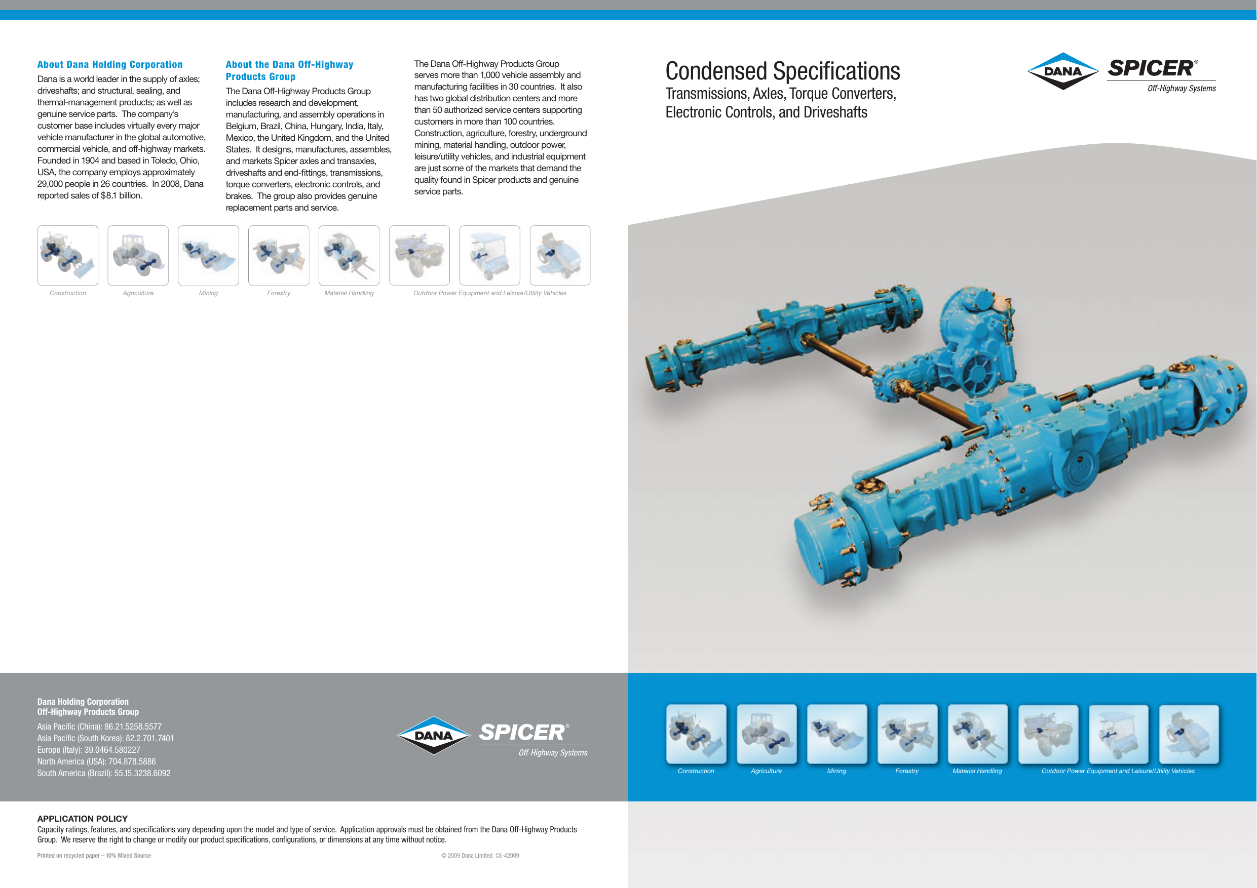 Dana Spicer Model 30, 44 & 60 Drive Axles Factory Service Repair Workshop Manual Download This manual covers all repairs with. dana t12000 xmsn,3-4-6 speed intmd drop,v9, manual,maintenance, DANA VDT12000, MAINTENANCE SECTION, from April 2011 DANA T20000 POWERSHIFT XMSN,3 SPEED INTMD DROP,V10 MANUAL,MAINTENANCE,. Condensed Speciļ¬cations Axles, Transaxles, Driveshafts, Transmissions, Torque Converters, and Electronic Controls Construction Agriculture Mining Forestry Material Handling Outdoor Power Equipment and Leisure/Utility Vehicles.