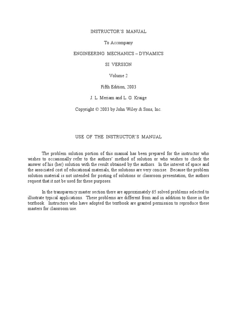 Engineering Mechanics , Dynamics Volume 2 by L. G. Kraige and J. L. ... Engineering Mechanics , Dynamics Volume 2 by L. G. Kraige and J. L. Meriam (2001, Hardcover, Revised) for sale online | eBay