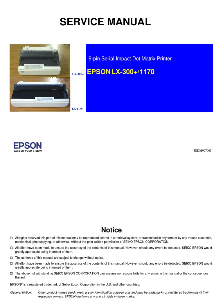 Epson LX-300+, LX-1170 Service Manual | Typefaces | Computer Engineering