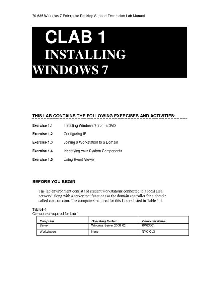 Exam 70-685: Windows 7 Enterprise Desktop Support Technician, Lab ... Exam 70-685: Windows 7 Enterprise Desktop Support Technician, Lab Manual, Revised and Expanded Version