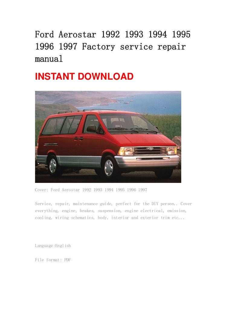 Ford Aerostar 1993 To 1997 Factory Workshop Service Repair Manual - El Club de Diagramas es donde los técnicos intercambian y comparten Diagramas, Manuales de Servicio y todo archivo de información técnica útil para las reparaciones electrónicas.. El Club de Diagramas es donde los técnicos intercambian y comparten Diagramas, Manuales de Servicio y todo archivo de información técnica útil para las reparaciones electrónicas.. 16.04.2009 · Here you go Diesel-Central.com the technical source for Diesel Truck information, Truck Pulling, and Drag Racing I just did this 2 weeks ago. Follow the.