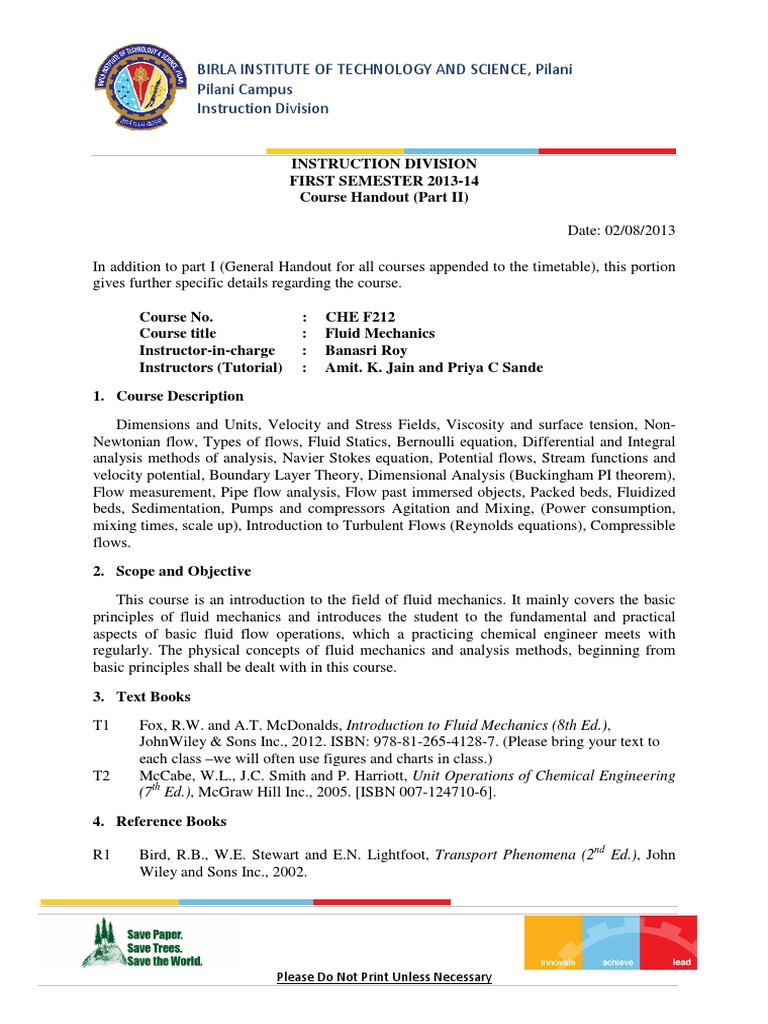 ME_F212_1082 | Fluid Mechanics | Fluid Dynamics