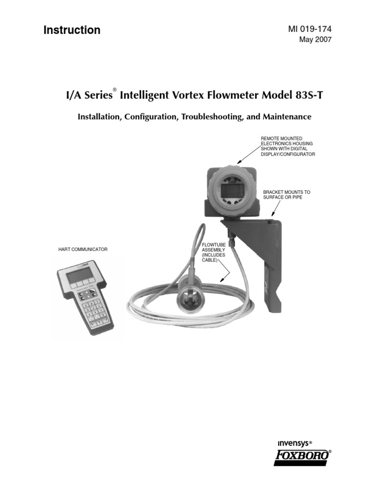 Foxboro 83F-A, 83W-A Vortex Flowmeter | Cascade Automation Foxboro IMT96-PEATB10N-AB Magnetic Flow Transmitter