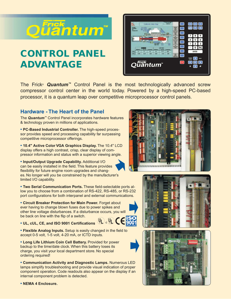 Frick Compressor Control Panels Manual - communications setup frick® quantum™ hd compressor control panel version 10.1x form 090.040-cs (may 2016) communications setup. MAINTENANCE FRICK® QUANTUM™ HD COMPRESSOR CONTROL PANEL Version 10.21 Form 090.040-M (NOV 2016) MAINTENANCE File: SERVICE MANUAL - Section 90 Replaces: 090.040-M (APR 2016). COMPRESSION. Model. 3000HP Ariel JGC/4 Single stage 4 throw Sour compressor. Unit has 19.625 cylinders 256PSI discharge, Teco Electric driver..
