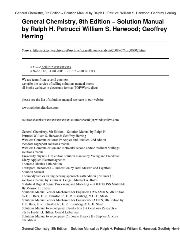 General Chemistry Petrucci 4th Edition Solutions Manual - Buy General Chemistry (4th Edition) on Amazon.com FREE SHIPPING on qualified orders. This bar-code number lets you verify that you're getting exactly the right version or edition of a book. The 13-digit and 10-digit formats both work.. this exam includes some parts all of the quizzes i offer but you may purchase separately if desired. [.