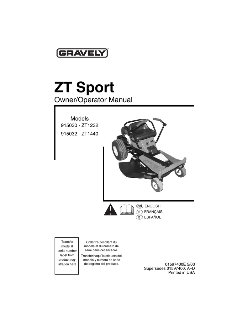 Gravely Zt 1232 Owner Manual - View and Download Gravely REAR ENGINE RIDER 927060 - RM1028 parts manual online. Rear Engine Rider. REAR ENGINE RIDER 927060 - RM1028 Lawn Mower pdf manual download. Also for: Rear engine rider 927062 - rm1232, Rear engine rider 927064 - rm1440, 927060, Rm1028, 927062, Rm1232, 927064,.