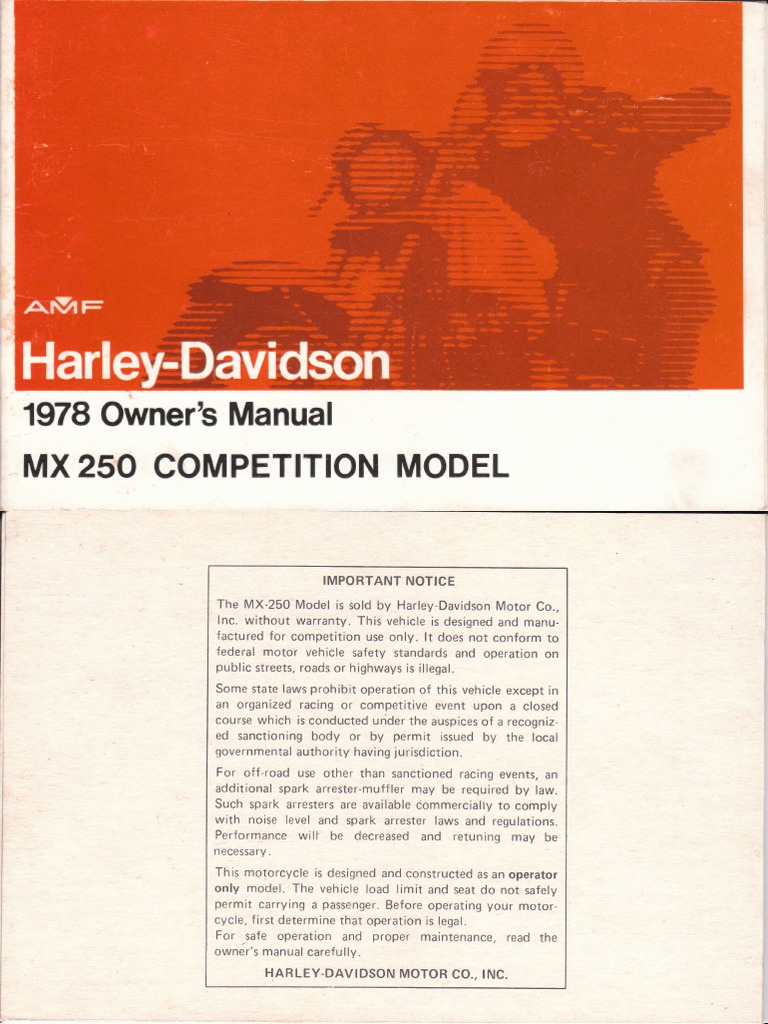 Harley Davidson MX250 - Owners Manual - 1978 | Carburetor | Clutch