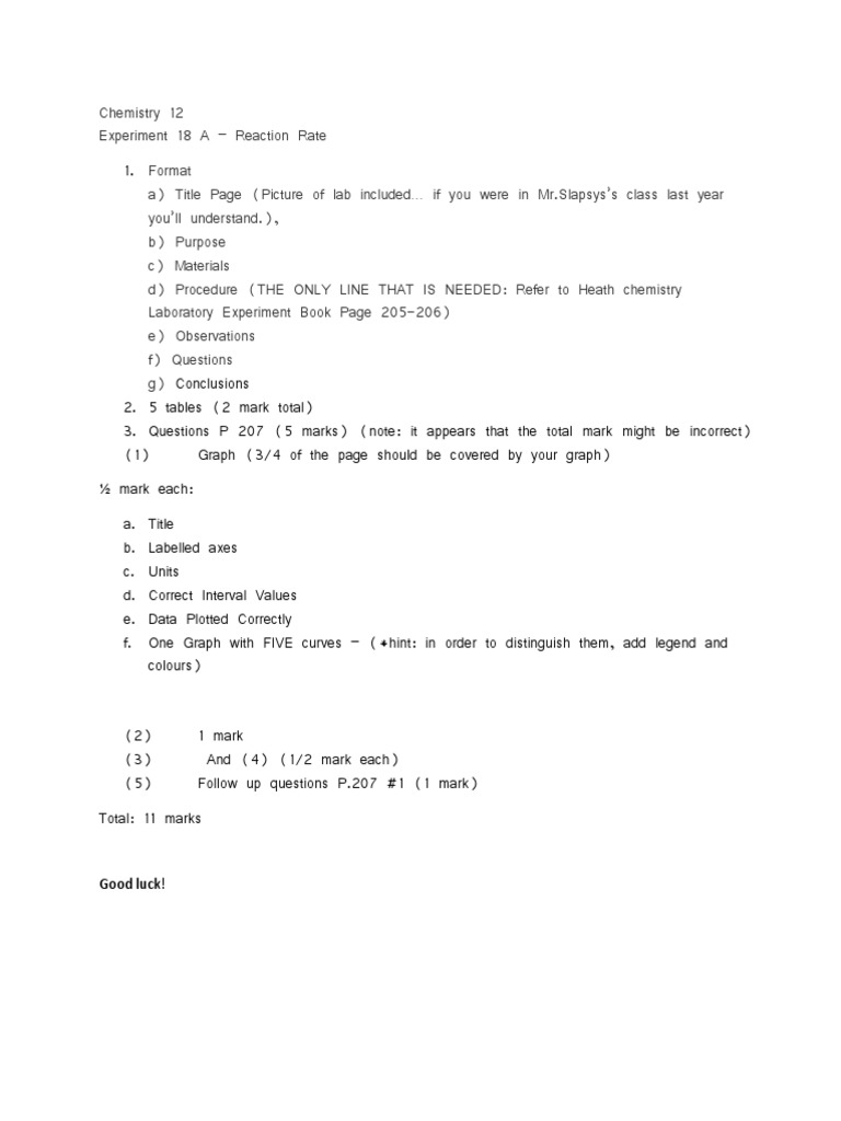 Chemistry 12 - Reaction Rate Lab Report Guidelines