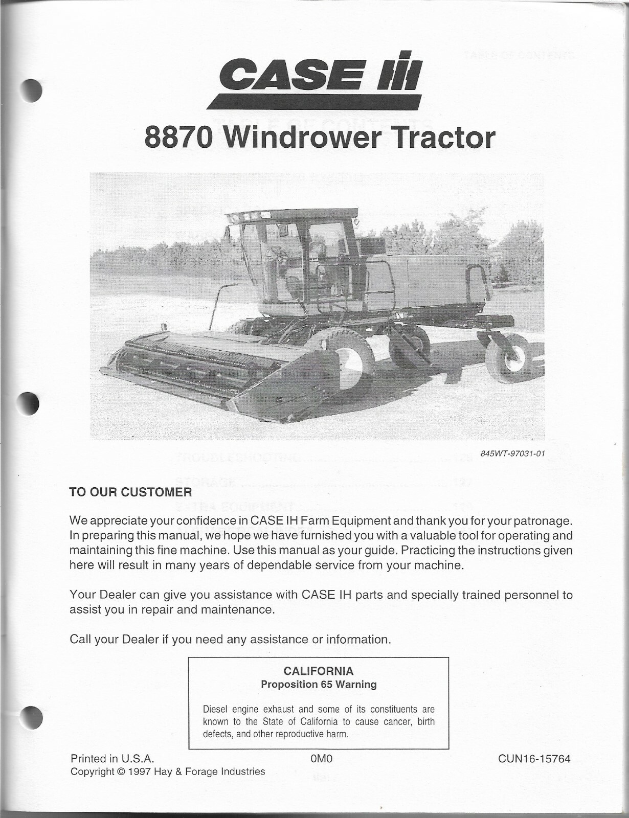 CASE IH 8870 Windrower Operators Manual RAC9-78774. Hesston 8450 is same