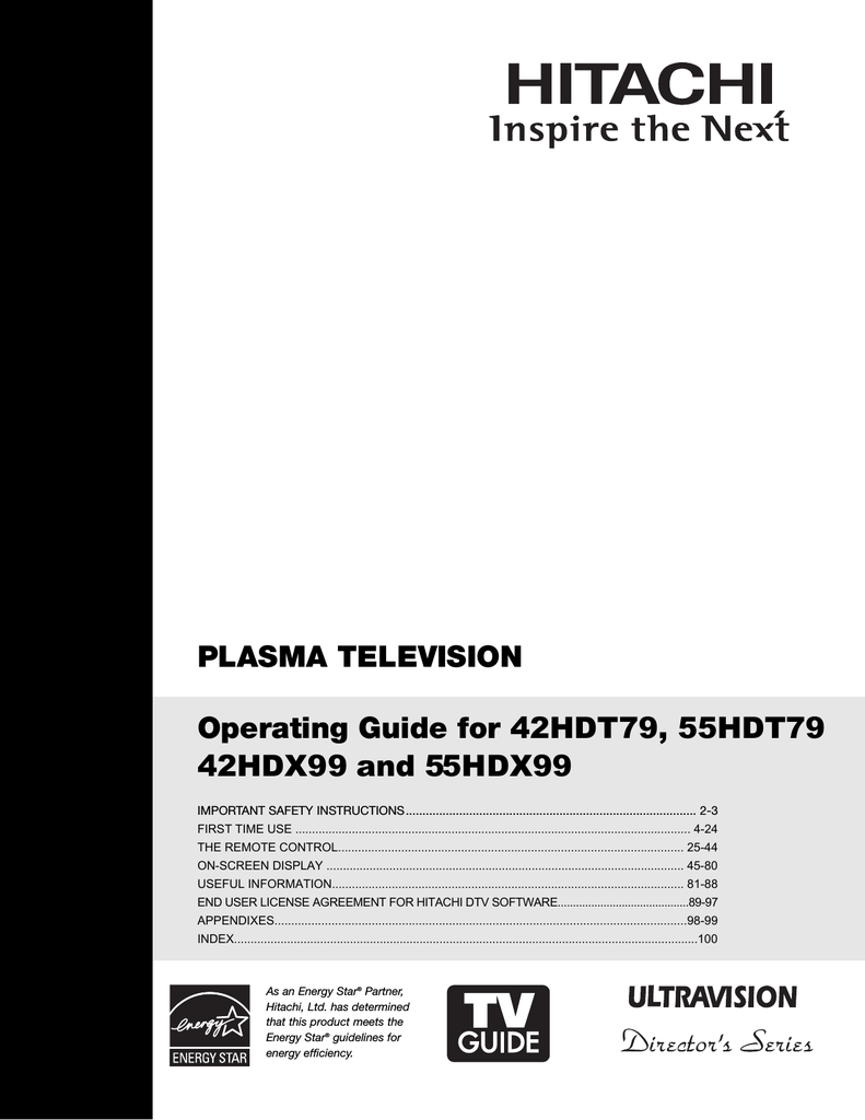 Hitachi 55HDT79 42HDX99 Flat Panel Television User Manual | manualzz.com