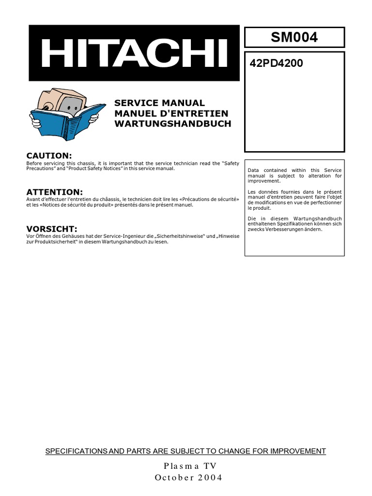 Hitachi 55 Plasma Tv Manual - Download Hitachi Televisions Product Manuals & brochures Please select a product model below to access plasma televisions brochures, manuals and technical specifications.. View and Download Hitachi 42HDS69 - 42'' Plasma TV operating manual online. Owners Guide. 42HDS69 - 42'' Plasma TV Plasma TV pdf manual download. Also for: 42hds52, 42hds52a, 55hds52.. View and Download Hitachi 42EDT41 - 42'' Plasma TV user manual online. Color Plasma Display Monitor. 42EDT41 - 42'' Plasma TV Monitor pdf manual download. Also for: Pw1a..