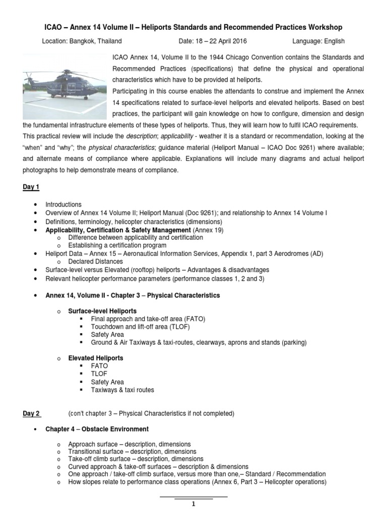 Annex 14 Vol II Workshop 2016 Outline_Revised | Aviation | Technology