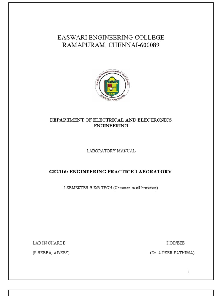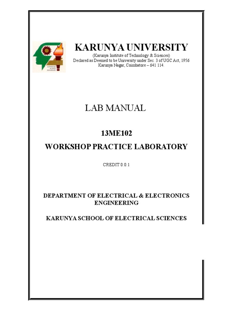 12ME102 - Workshop Practice LAB MANUAL | P–N Junction | Electricity