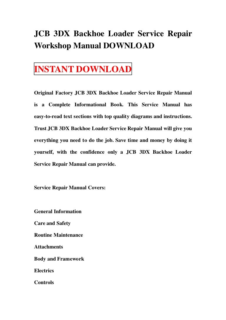 JCB 3DX Backhoe Loader Service Repair Workshop Manual INSTANT ... JCB 3DX Backhoe Loader Service Repair Workshop Manual INSTANT DOWNLOAD - Automotive Manuals