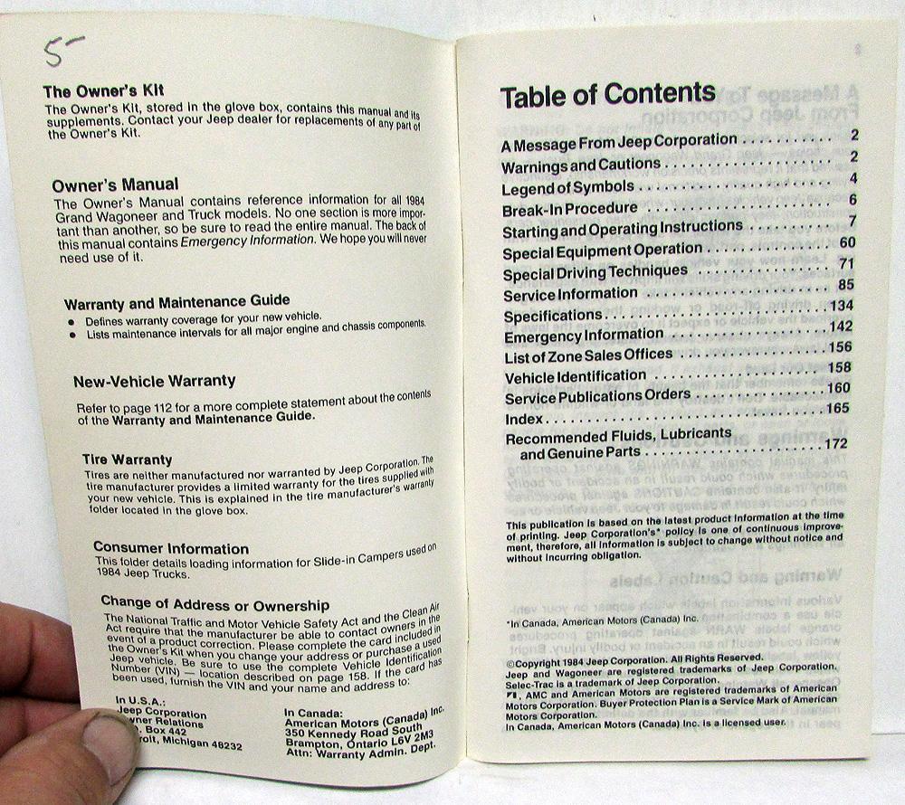 1984 Jeep Grand Wagoneer Truck Owners Manual Original