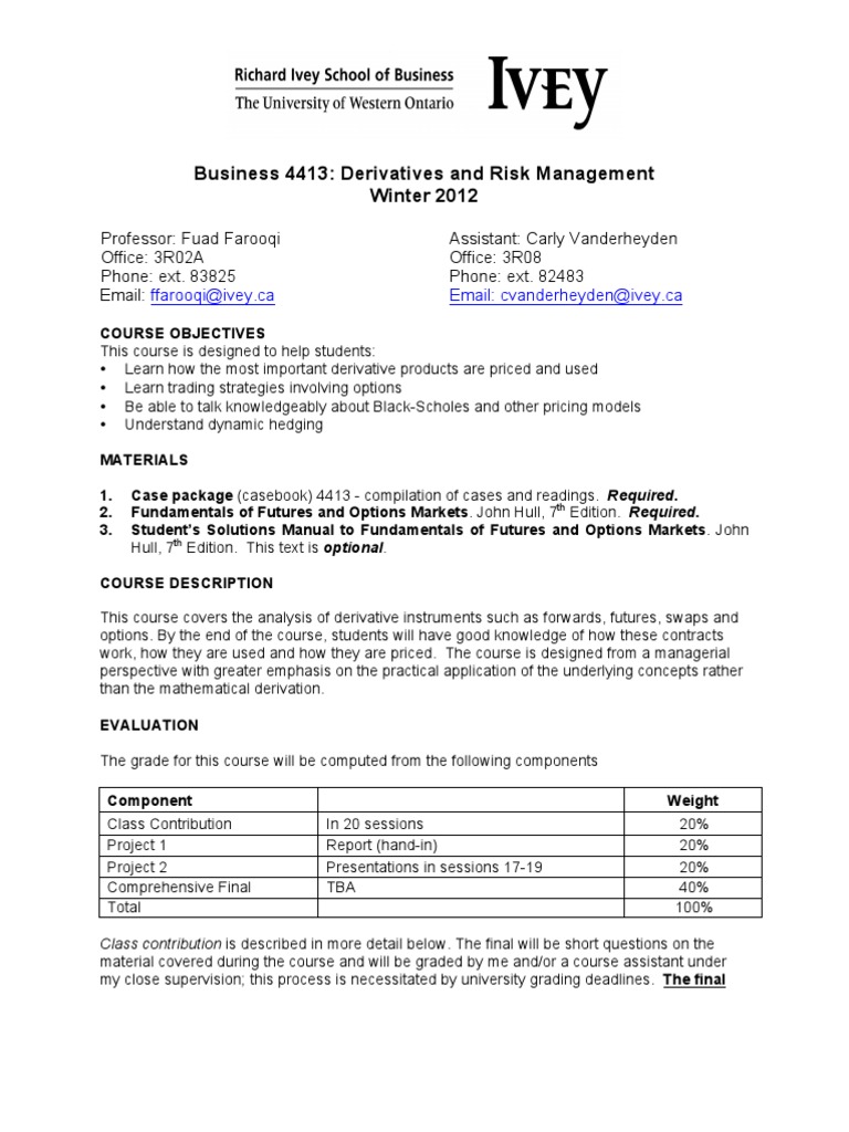Course Outline | Option (Finance) | Derivative (Finance)