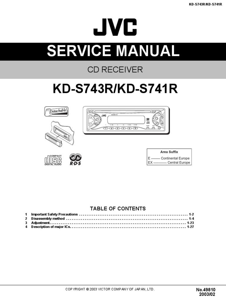 The biggest collection of JVC manuals and schematics. All available for free download.. Jvc Kd S36 Instructions - WordPress.com MANUAL DE INSTRUCCIONES MANUEL D’INSTRUCTIONS GET0570-001A [J] For customer Use: Enter below the Model No. and Serial No. which are located on the top or bottom of the cabinet.. No complicated manual procedure to worry about. (*JVC Music Play application is required) Sound Optimalization. Time Alignment: By selecting the speaker type and the distance to the centre of the listening position, the head unit will automatically adjust the timing of the sound output from each of the speakers so that the sound from each of the speakers will arrive exactly at the same time to.