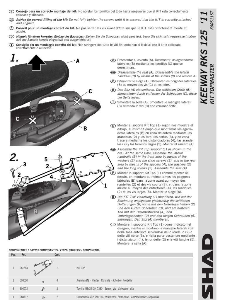 Manual Instalación Fijacion Baul Shad 2362 (KEEWAY RKS 125)