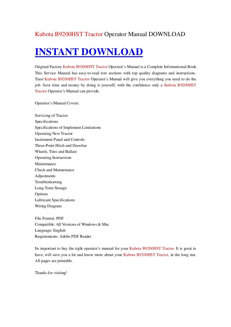 Kubota B9200hst Tractor Workshop Repair Service Manual Pdf - Helpful information and resources on Kubota tractors from SSB Tractor, a leading provider of tractor parts, manuals, implements and toys.