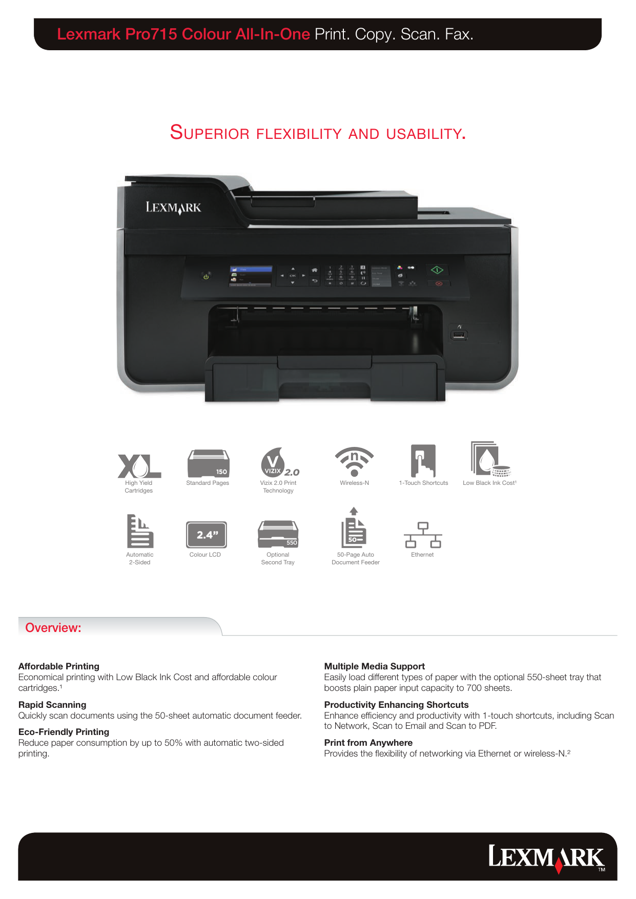 Lexmark Pro715 Colour All-In-One Print. Copy. Scan. Fax. | manualzz.com