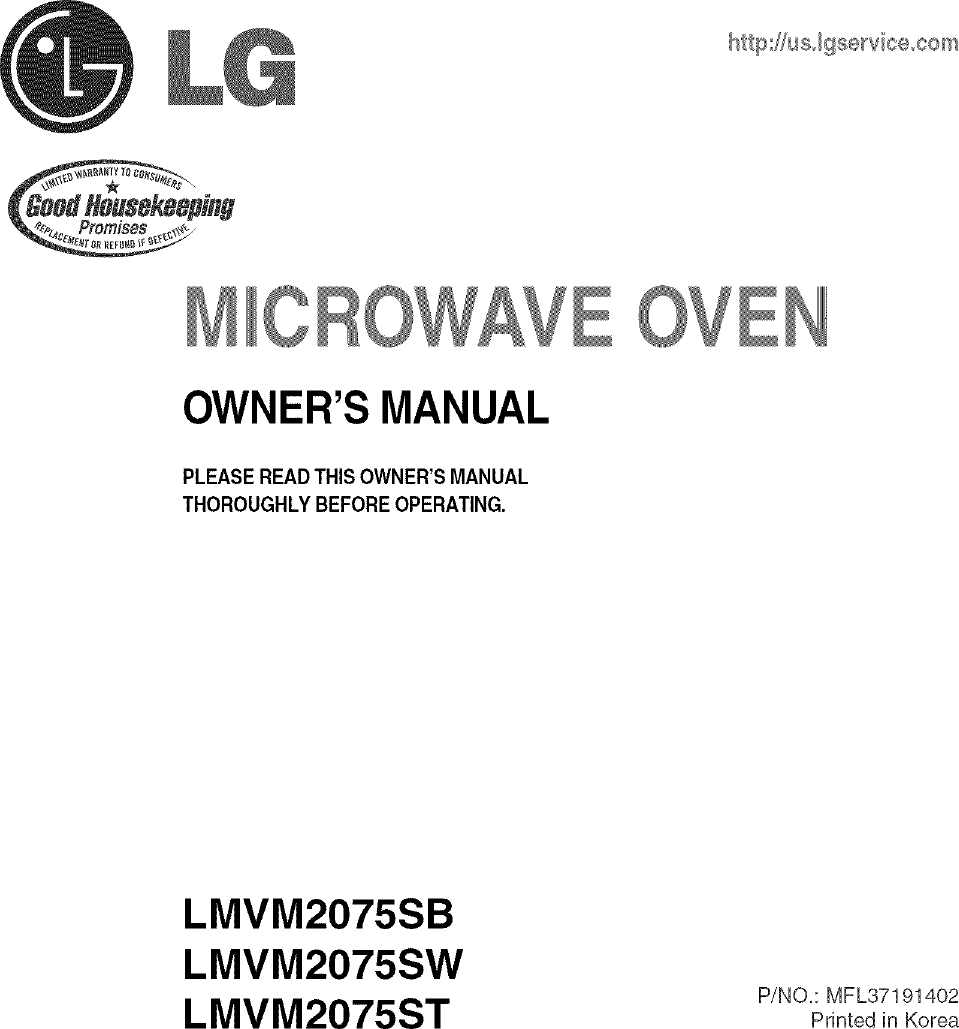 LG LMVM2075ST User Manual MICROWAVE Manuals And Guides L0704114