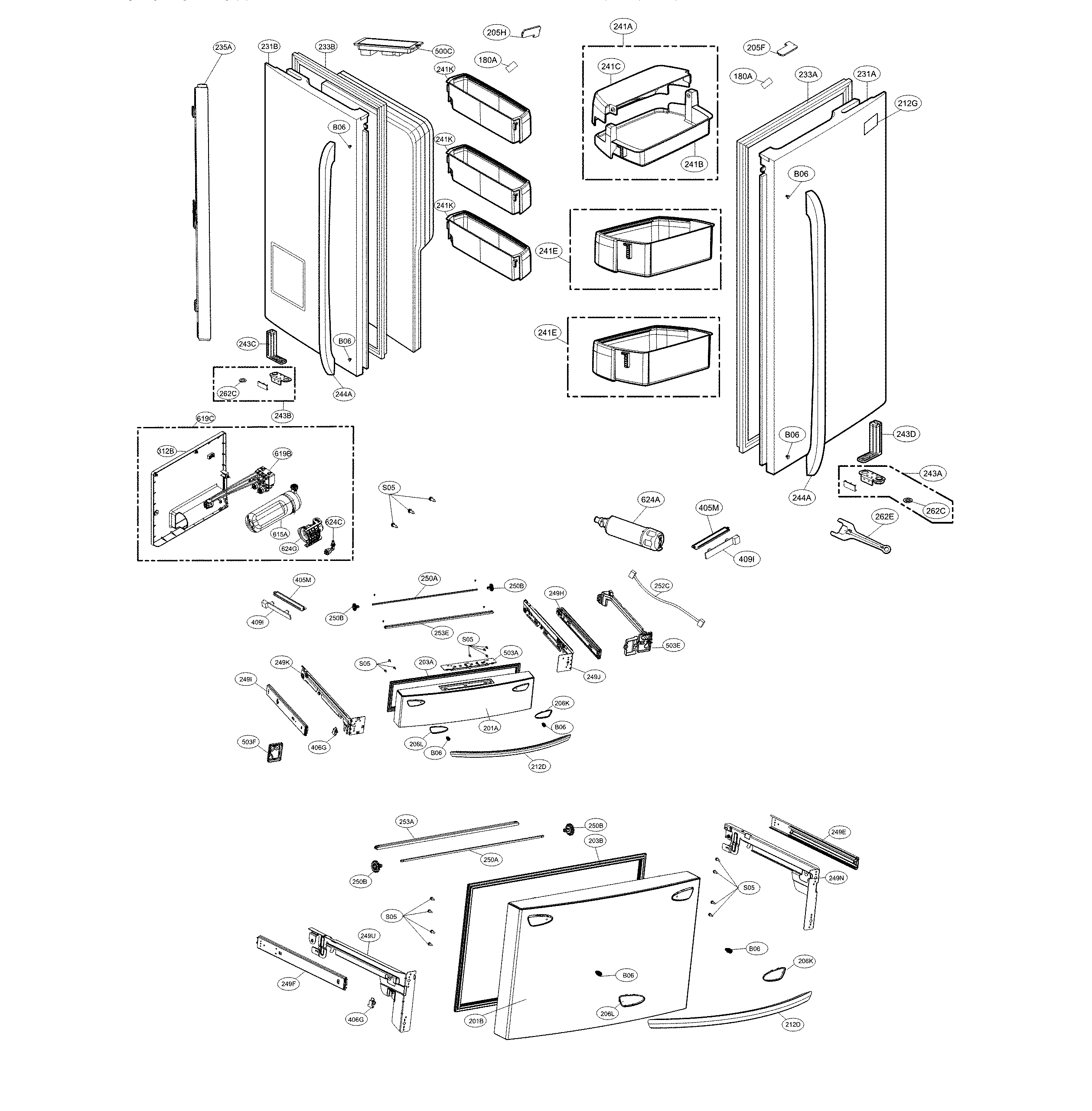 Lg model LMXS30746S/00 bottom-mount refrigerator genuine parts