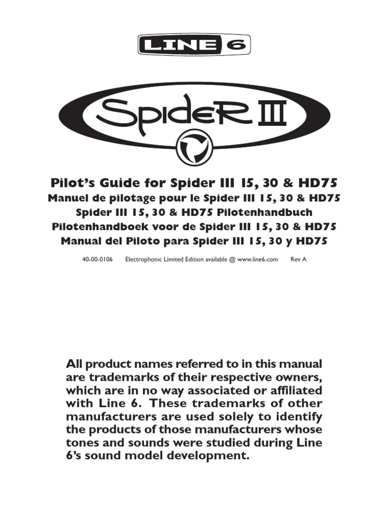 Line 6 Spider Iii Manuals - Spider ® V amps are for the everyday guitar player that needs a versatile workhorse. Whether you’re gigging, jamming in the garage, recording in the studio, or at home practicing, the Spider V series has an amp tailored for that application.. Line 6 is a music instruments manufacturing company that specializes in guitar amp and effects modeling, and makes guitars, amps, effects pedals, multi effects processors, guitar wireless, vocal wireless, music software, recording interfaces, digital mixers, and personal amplification speakers.. View and Download Line 6 DT50-112 pilot's manual online. Line 6 DT50-112: User Guide. DT50-112 Musical Instrument Amplifier pdf manual download. Also for: Dt50-212, Dt50..