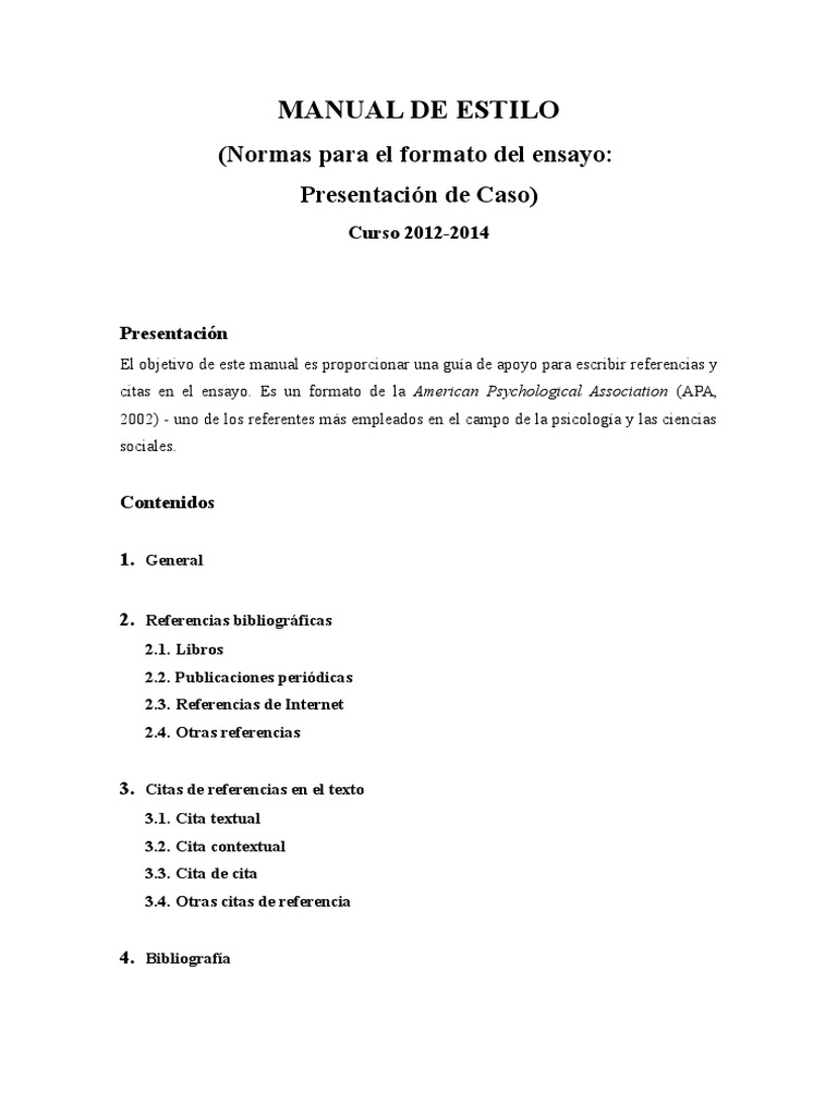 Manual De Estilo Apa 2012 - A Complete Resource for Writing and Publishing in the Social and Behavioral Sciences. The rules of APA Style ®, detailed in the Publication Manual of the American Psychological Association, offer sound guidance for writing with simplicity, power, and concision.. El estilo/formato APA es el estándar elaborado por la Asociación Estadounidense de Psicología (American Psychological Association, APA), en 1929 para la elaboración y presentación de trabajos escritos de ciencias de la conducta o de ciencias sociales.. 1 Introducción al estilo APA para citas y referencias (lineamientos de la 3ª edición). Mtra. Ana Cuevas Romo Dr. Sergio Méndez Valencia Revisado por: Dr. Roberto Hernández Sampieri.