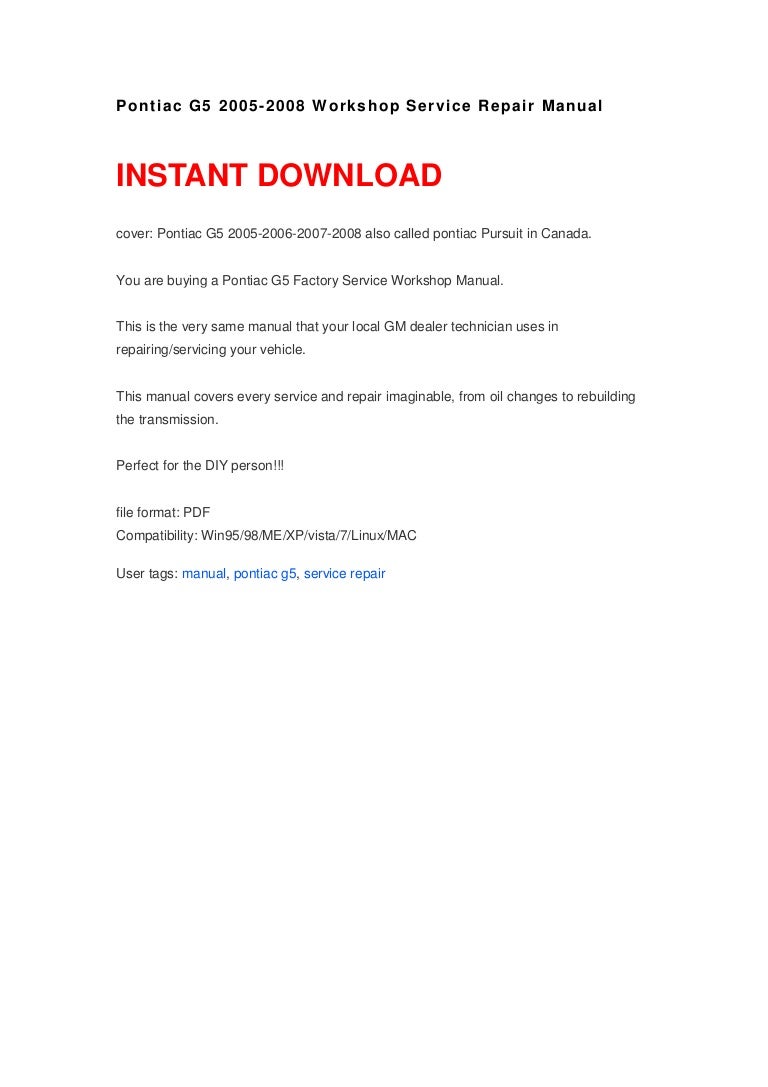 Manual Pontiac G5 2007 Espanol - Pontiac G5. The Pontiac G5 was a rebadged version of the Chevrolet Cobalt. The Pontiac Pursuit was originally introduced in Canada as a sedan in 2005.. Save $1,217 on a used Pontiac G5. Search pre-owned Pontiac G5 listings to find the best local deals. We analyze millions of used cars daily.. Motor Trend reviews the 2007 Pontiac Solstice where consumers can find detailed information on specs, fuel economy, transmission and safety. Find local 2007 Pontiac Solstice prices online..