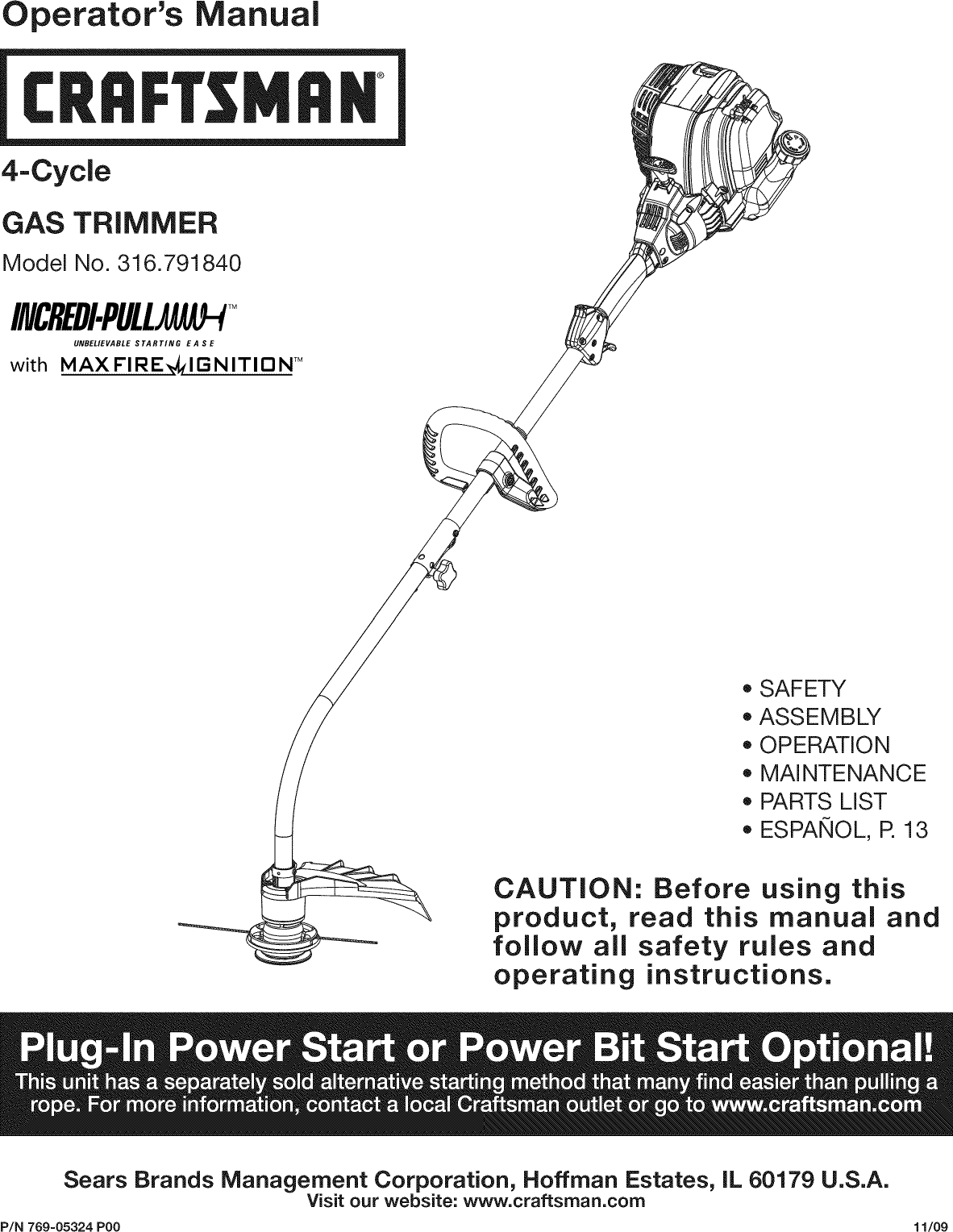 Craftsman 316791840 User Manual TRIMMER Manuals And Guides L1001447