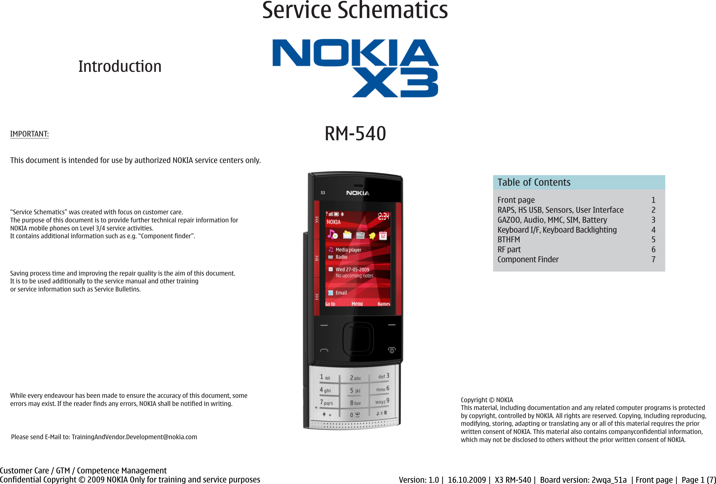 Nokia X3 RM 540 Service Schematics. Www.s manuals.com. Schematics V1.0