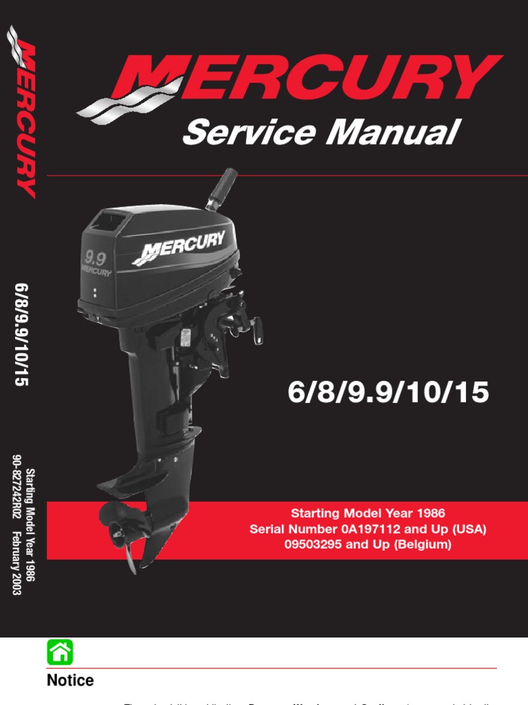 Mercury Mariner Outboard 6 8 99 10 15 Service Manual - 40 hp 2 stroke outboard motor not getting sufficient water Choke on a 1982 Merc 40 hp 2005 8.9 -9 hp 37893379003 Choke to keep runn Mercury sable 1982 boat motor serial #06168859. Download Mercury outboard engine factory service repair manuals straight to your computer in just seconds. Fix your problems now! Fix your problems now! Download Automotive Repair Manuals for Outboard Engines, ATV, Motorcycle Service Manuals, Truck Repair Manuals, Car Repair Manuals, JetSki Manuals.. Mariner outboard motor service manual repair 70HP to 115HP. mercury outboard spark plug gap, 1988 80 hp mercury outboard manual, 2006 60 hp mercury Download this PDF document for 99 Hp Mercury..