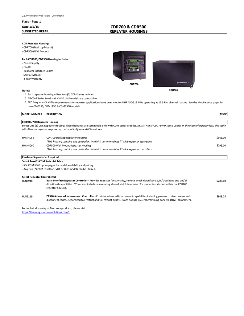 Motorola Cdr700 Repeater Programming Manual - Up one level (MaxTrac index) Up two levels (Moto index) Back to Home : Introductory Information on the MaxTrac, Radius and GM300 series radios, the DeskTrac station, and the GR300, GR400, GR500, GR1225, R1225 and RKR1225 series repeaters. We offer complete access to all currently offered Motorola Service and User manuals.. Readbag users suggest that MOTOCAT.xlsx is worth reading. The file contains 258 page(s) and is free to view, download or print..